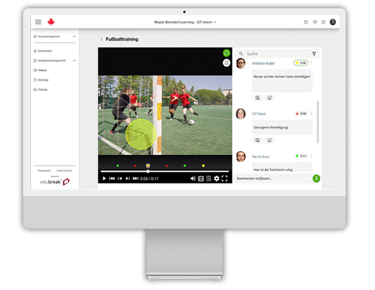 Dreh- und Angelpunkt der interaktiven Videoarbeit in der edubreak®-Welt ist der Social Video Player. Er ist als Kernelement in edubreak® integriert und bietet vielfältige Funktionen für die Video-Analyse, Video-Feedback und Video-Training. Sieh dir jetzt unseren Use Case live im Social Video Player an!